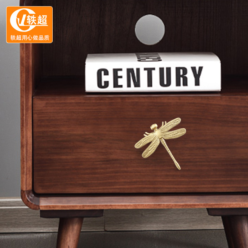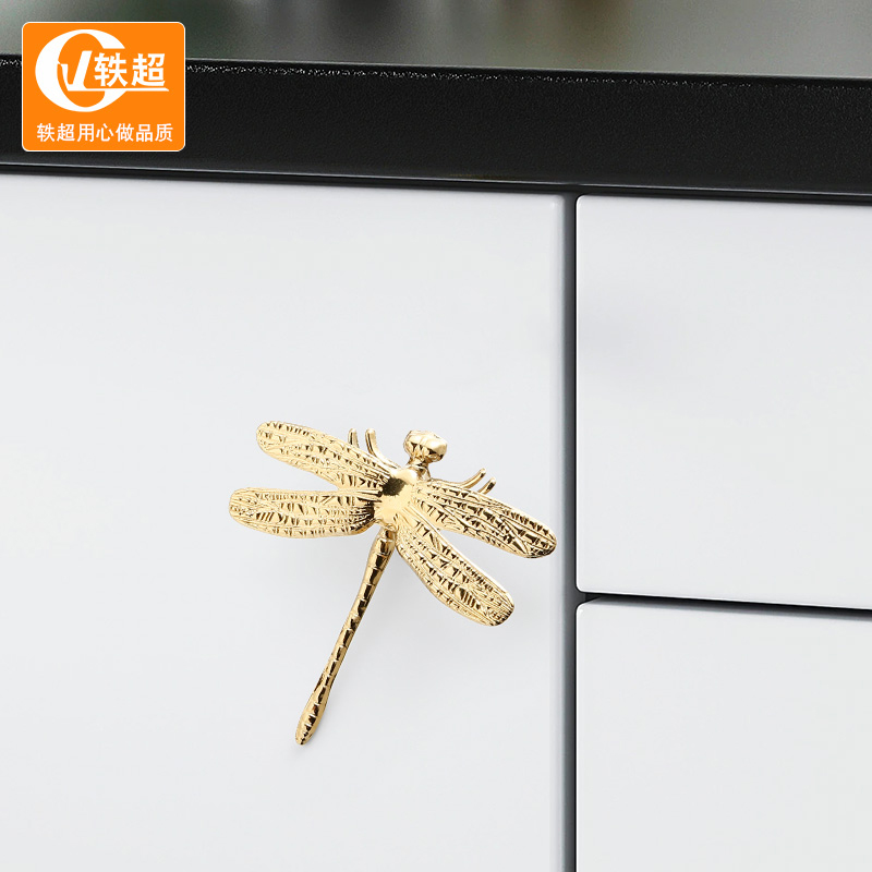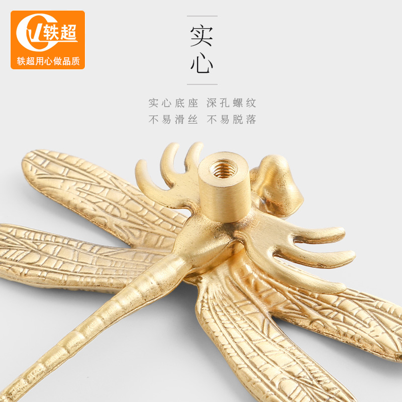 Nordic brass handle Single hole Dragonfly cabinet door handle Pastoral personality creative wardrobe overall cabinet handle Drawer handle