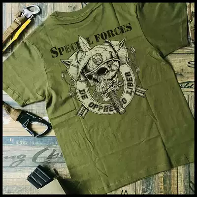 (Tactical bone frog) New SF special forces military fans printed cotton round neck seamless barrel woven T-shirt short sleeve