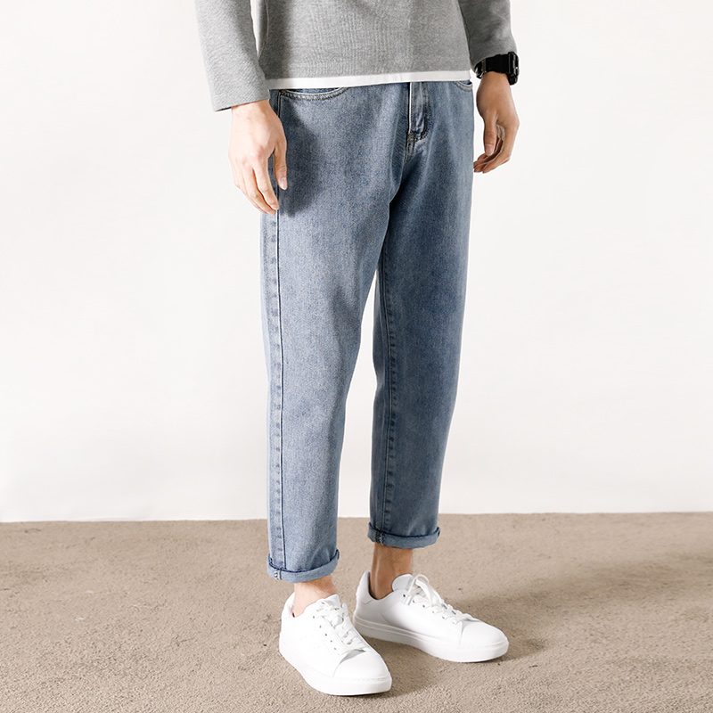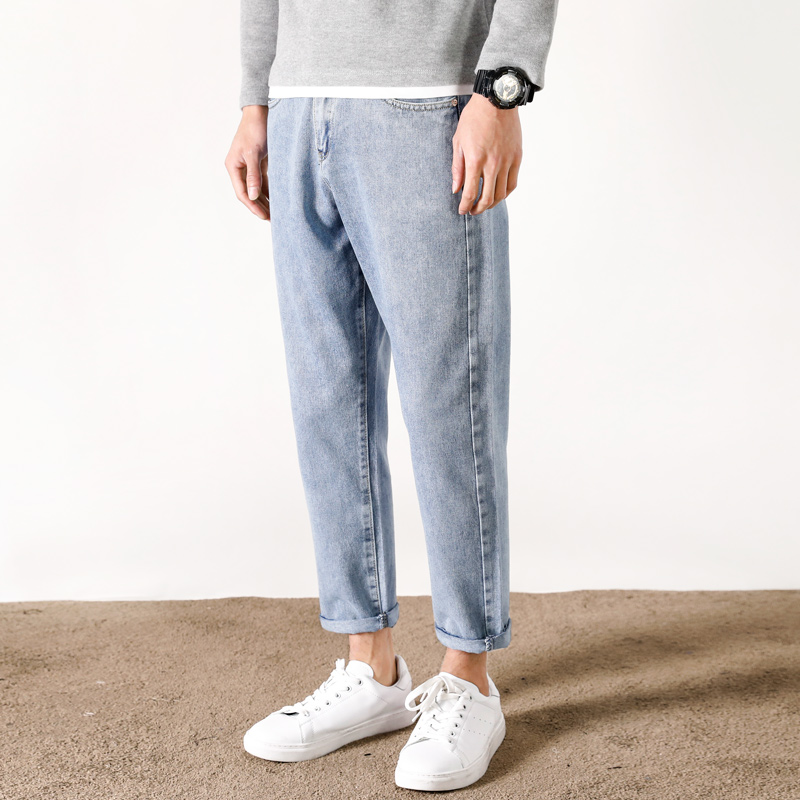 Spring men's 90% jeans Men's straight cylinder loose Harun light blue casual washed with wide leg Old daddy pants