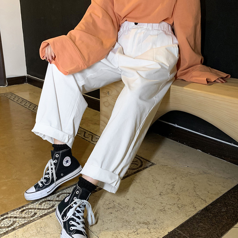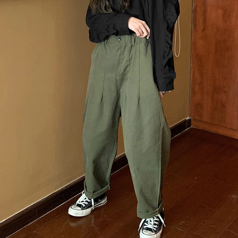 The race is small and lazy 2022 spring and summer new Korean version loose with slim bf tooling pants slim 100 hitch casual long pants female tide