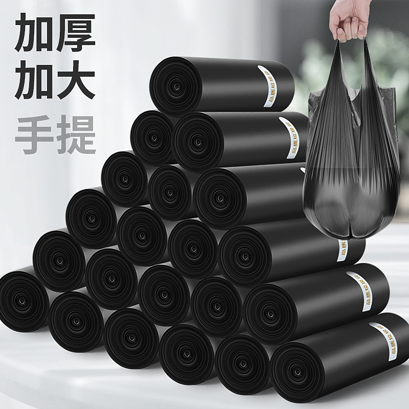 Garbage bag household portable black large and medium sized thickened vest pull dormitory student disposable kitchen