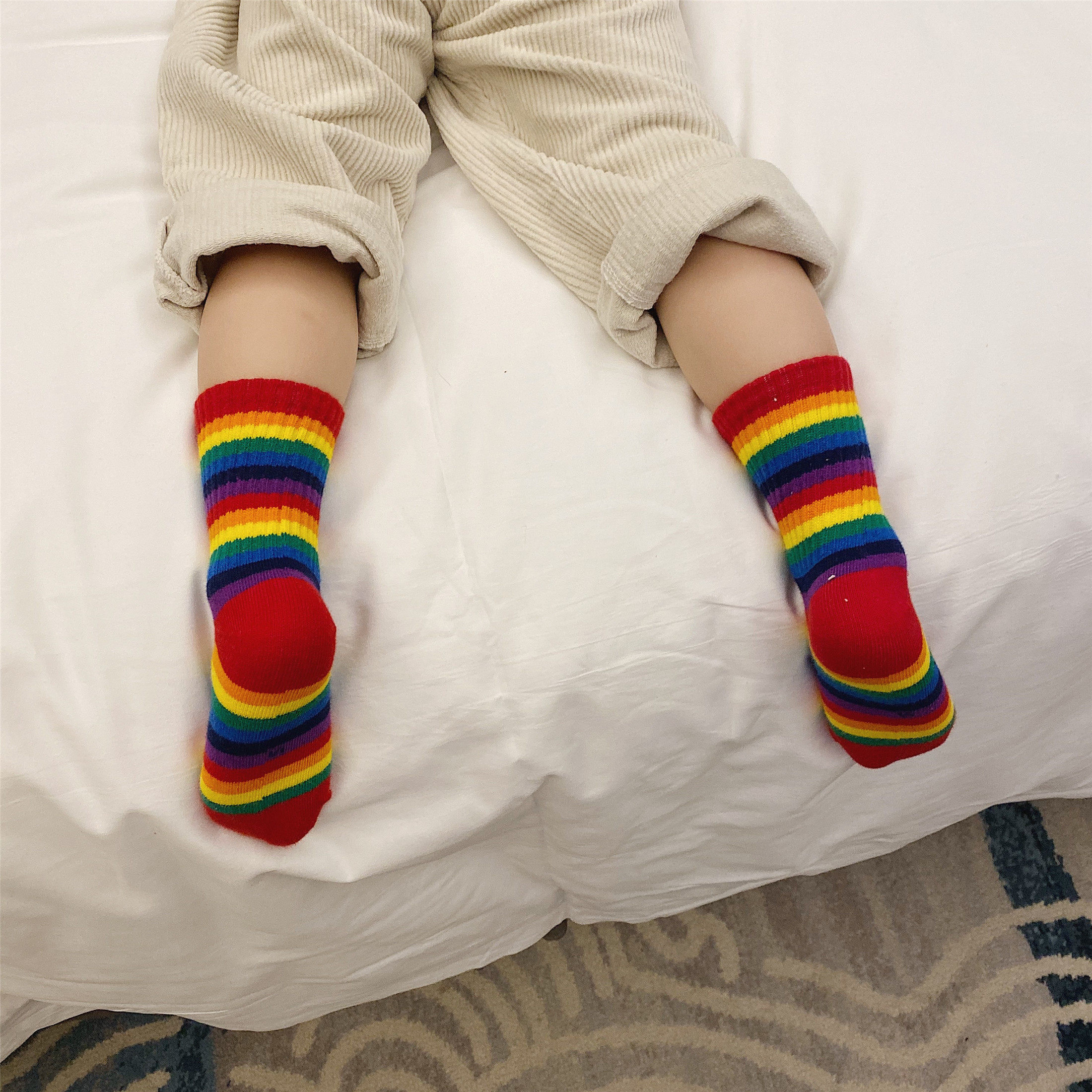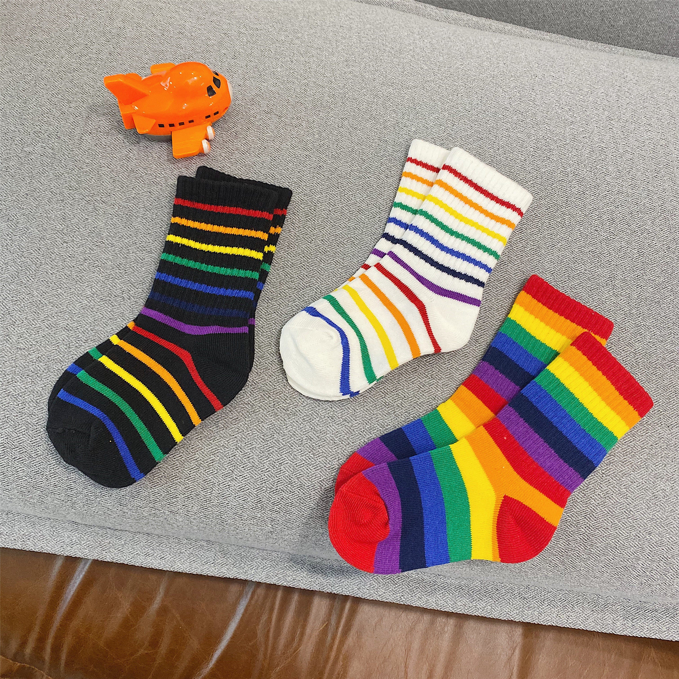 Cookies Moms Clothing Shop 2022 New Korean Version Children Cute Rainbow Striped Baby Socks Child Socks 1-3