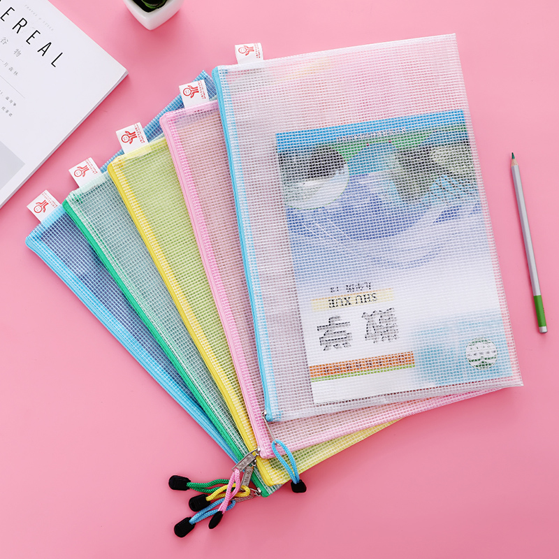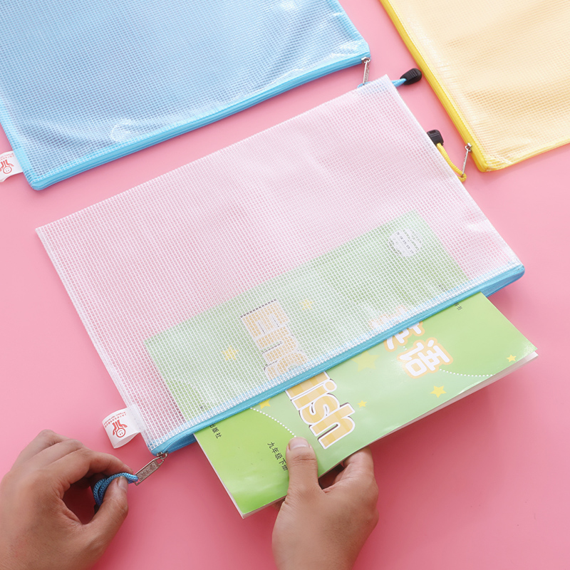 A4 file bag transparent grid information containing zipped bag student paper bag office supplies stationery waterproof archive bag students with briefcase large capacity bag wholesale-Taobao