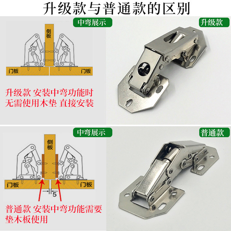 Cable solid furniture hardware thickening free opening hinge big bend middle bend straight arm universal cabinet door spring hinge bridge hinge