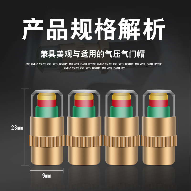 Car Tire Detection Cap Copper Core Safety Valve Nozzle Cap Tire Pressure Monitoring Watch Early Warning Cap Gas Cap Nozzle Valve Core Sleeve