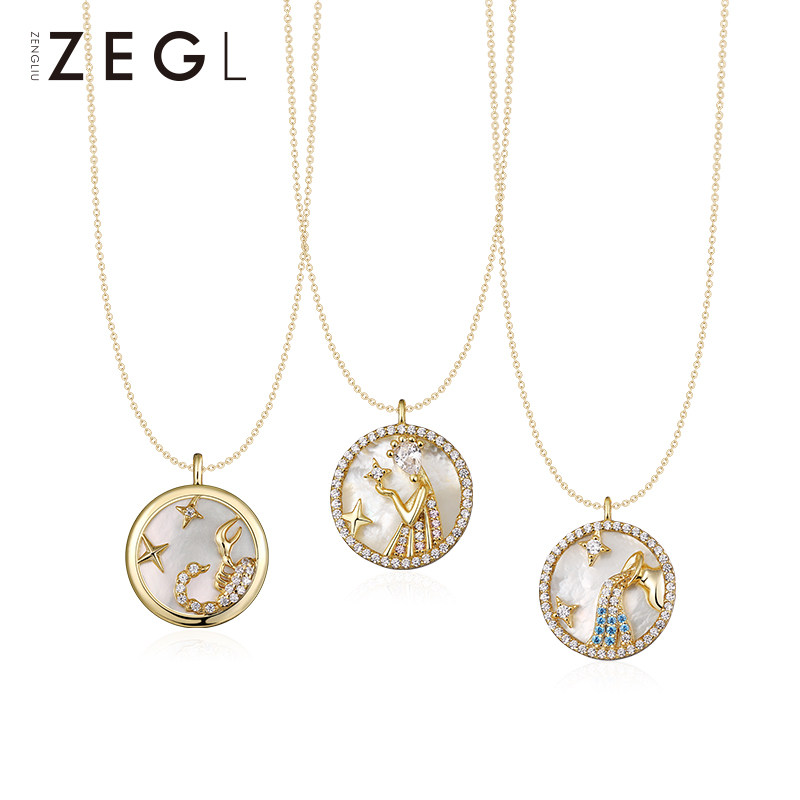 ZEGL Zodiac Couple Necklace for Girlfriend Sterling Silver Leo Clavicle Chain Accessories Birthday Valentine's Day Gift