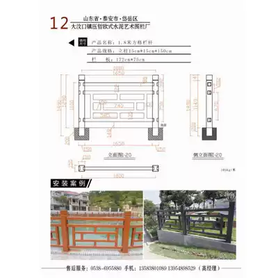 Cement reinforced concrete checkered guardrail Fence railing River pond scenic area railing