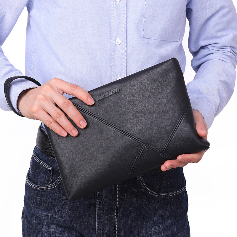 Men's handbag genuine leather hand bag with large capacity hand grip bag texture men's bag soft leather envelope Baotou layer Bull Leather Wallet