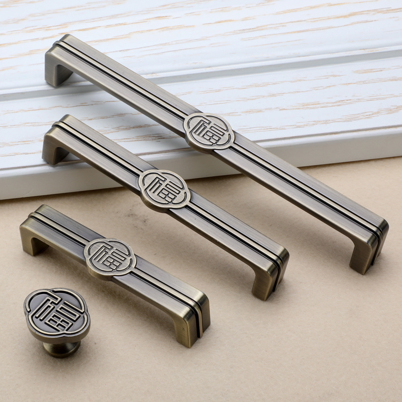 New Chinese Classical Handle Imitation Ancient Eu Style Ancient Bronze Integral Cabinet Wardrobe Door Handle Fu Character Cabinet Drawer Furniture furniture