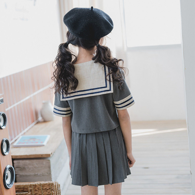 Girl's summer clothing suit 2020 new CUHK children's college wind short sleeves half body dress pure cotton suit Student clothes