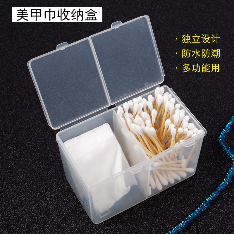 Transparent empty box finishing nail wash cotton remover towel manicure storage box cotton piece jewelry desktop drill tool 2 grids
