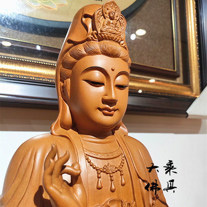 Taiwan wood carvings 12 inch 16 inch 19 inch 19 inch fragrant Zhangmu solid wood View bodhisattva sat like home dedicated to the solemn Buddha statue