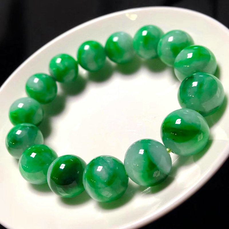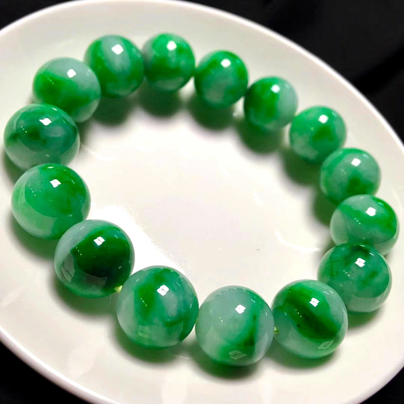 Burmese natural high ice floating green flower jadeite jade bead bracelet a cargo Buddha bead bracelet men and women bracelet with certificate