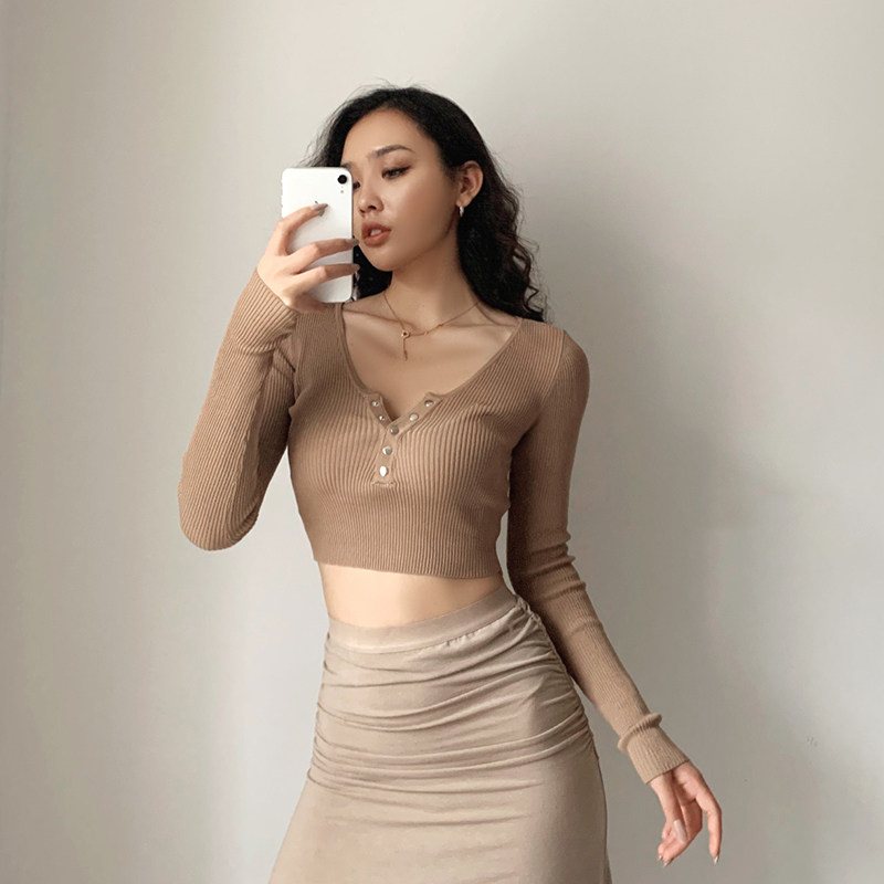 The tasty wind tight button knife sweater spring and autumn in short-mode dew-umbil long sleeve menswear tide