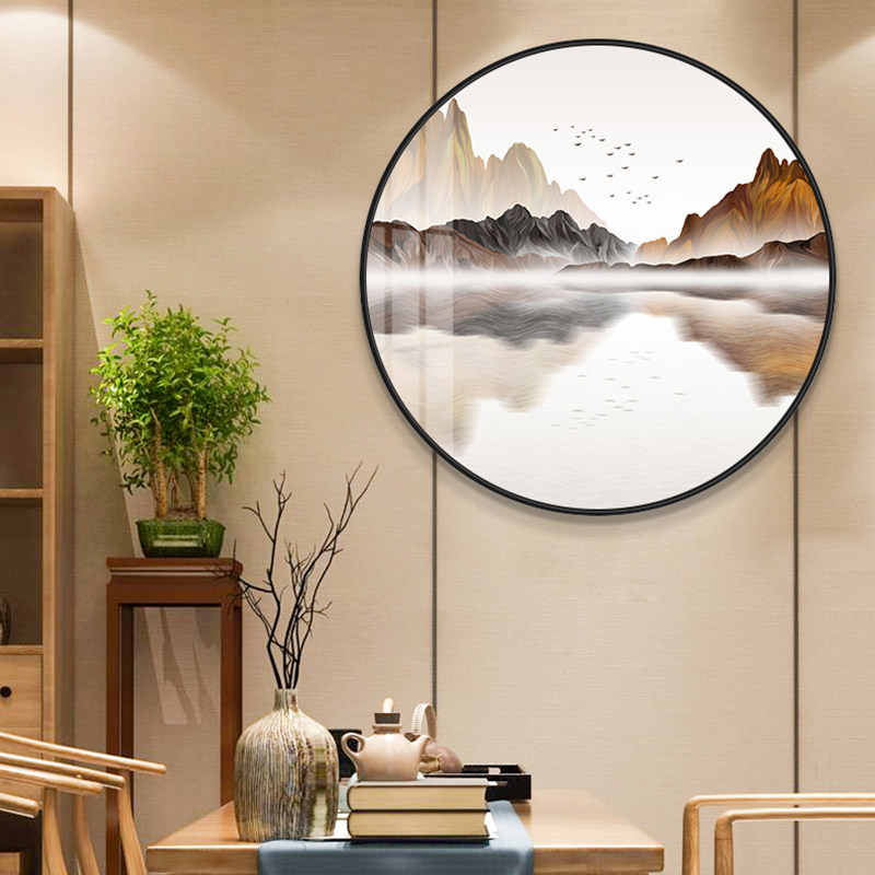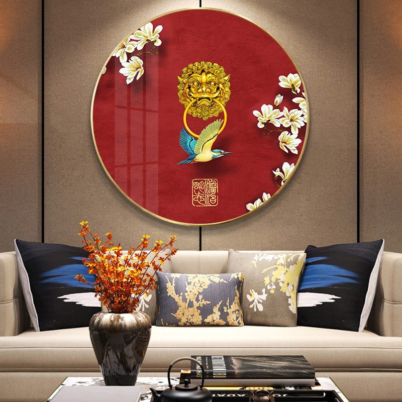 Light luxury crystal porcelain porch decoration painting new Chinese-style living room painting round hanging painting dining room wall painting entry into the door background wall