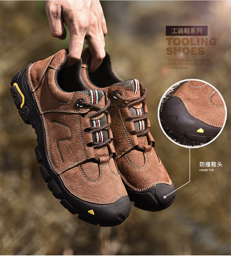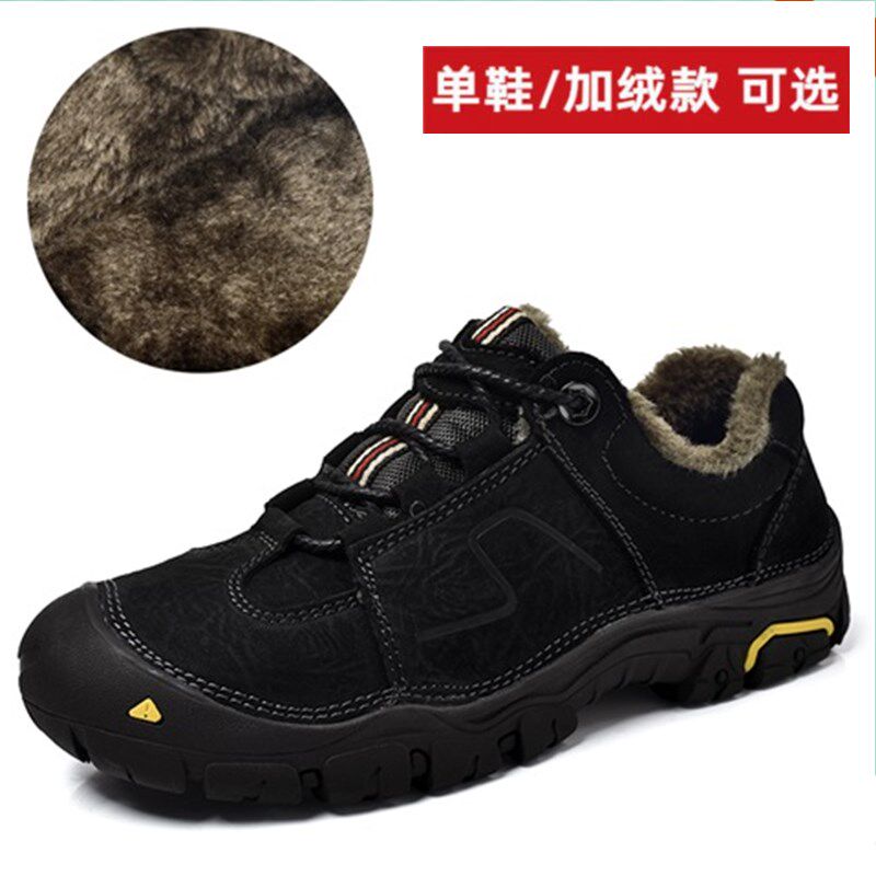 Mu Lingsen men's shoes leather mountaineering cotton shoes plus velvet warm outdoor casual shoes non-slip waterproof soft bottom leather shoes tide