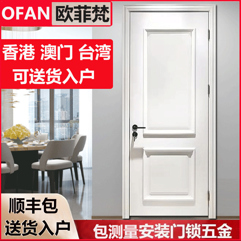 Solid wood door Paint interior door custom white silent bedroom door Kitchen powder room sliding door Invisible room door