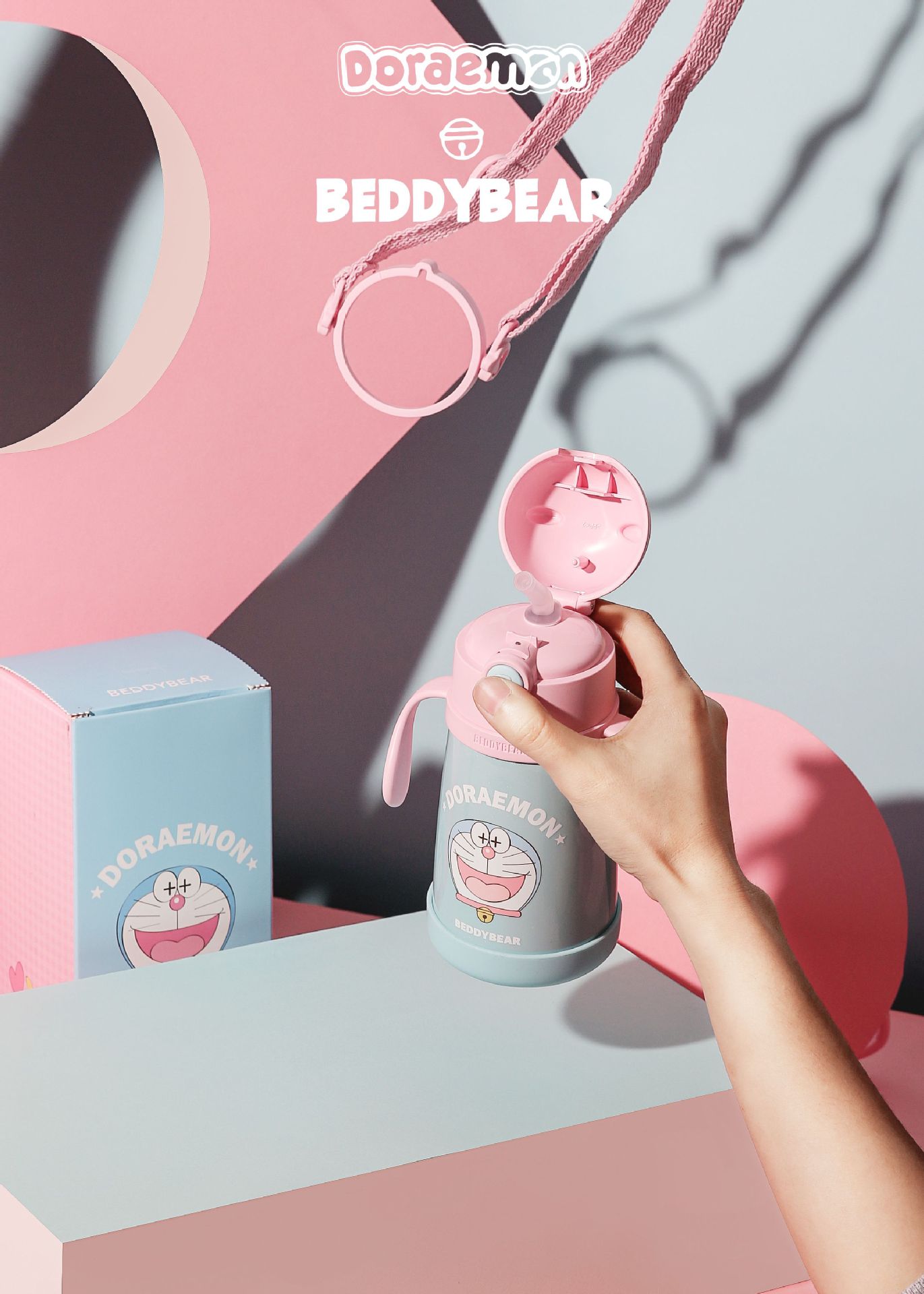 Cup with Kumamology Drinking children Insured cup 316 stainless steel Doraemon A dream cartoon machine cat Blue Fat Subcup 320ml
