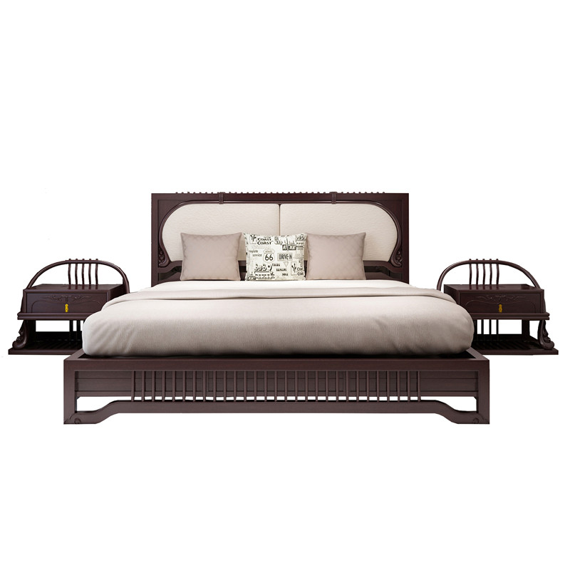 New Chinese style solid wood bed master bedroom 1 8 meters 1 5 meters large wedding bed modern minimalist Chinese style Zen double bed furniture