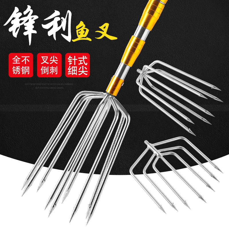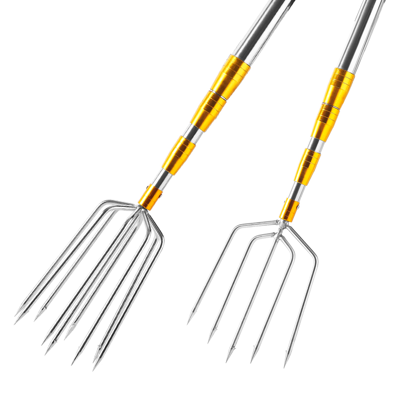 Multi-function retractable super hard with rod large fishing fork Large barbed stainless steel harpoon head fork fish plug steel fork artifact