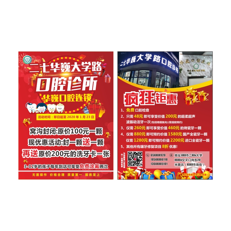 Oral Outpatient Publicity Single Print a4a5 Bifacial Small Batch Advertisement Free Design Making Hospital Colorful Page Custom Dm Single Page Custom Made Dental Oral Clinic Event Clinic Triple Folding Page Print