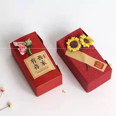 Retro wedding box return gift bag red bag red double joy gift box thank sticker long strip seal Kraft paper