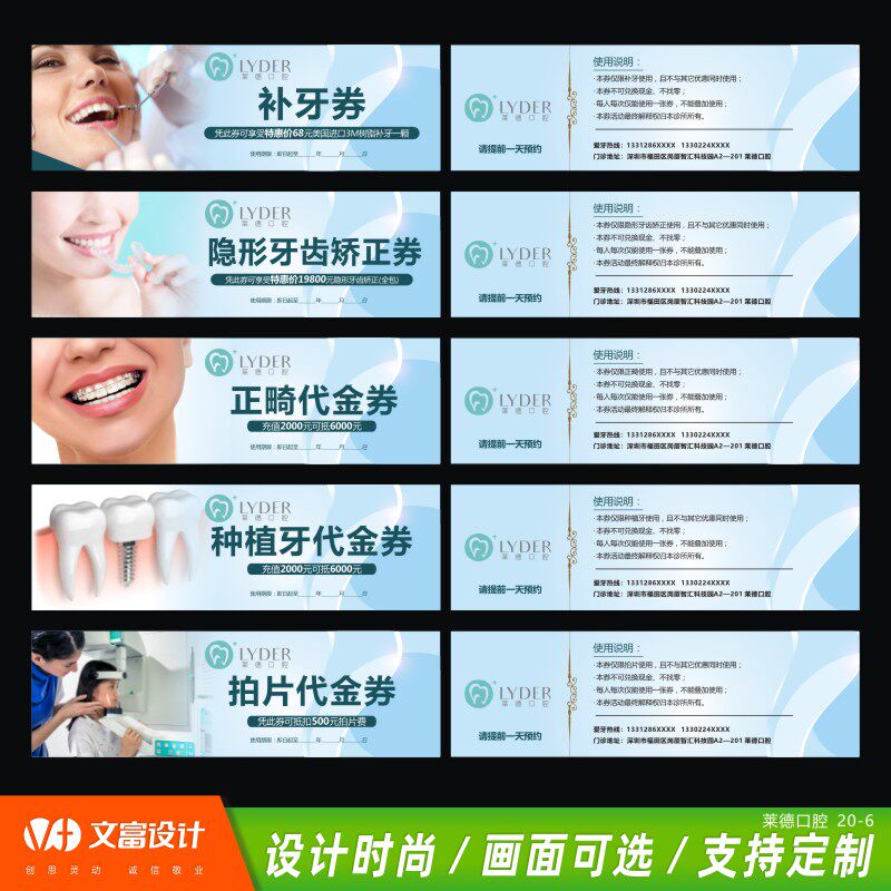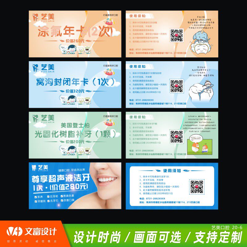 Oral vouchers custom children's groove closed dental cleaning experience card to make orthodontic fluorine cultivation preferential vice coupon design dental replenishment card printing opening voucher making