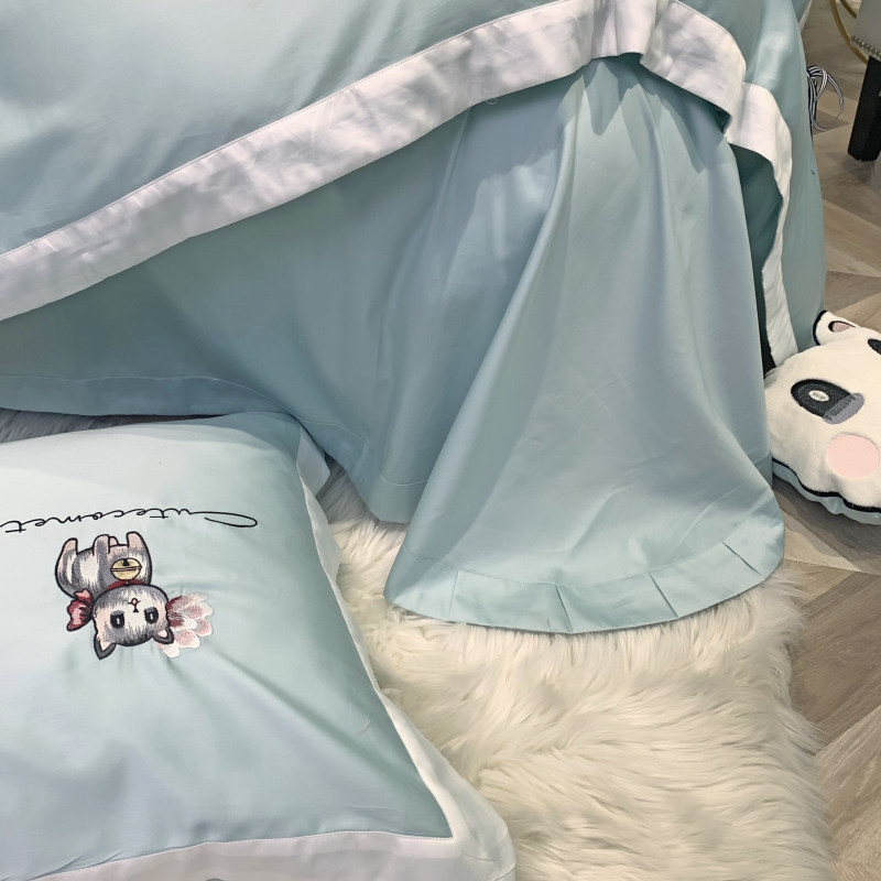 Four-piece cotton girl heart quilt cover cartoon cute cat embroidery long-staple cotton cotton small fragrance bedding