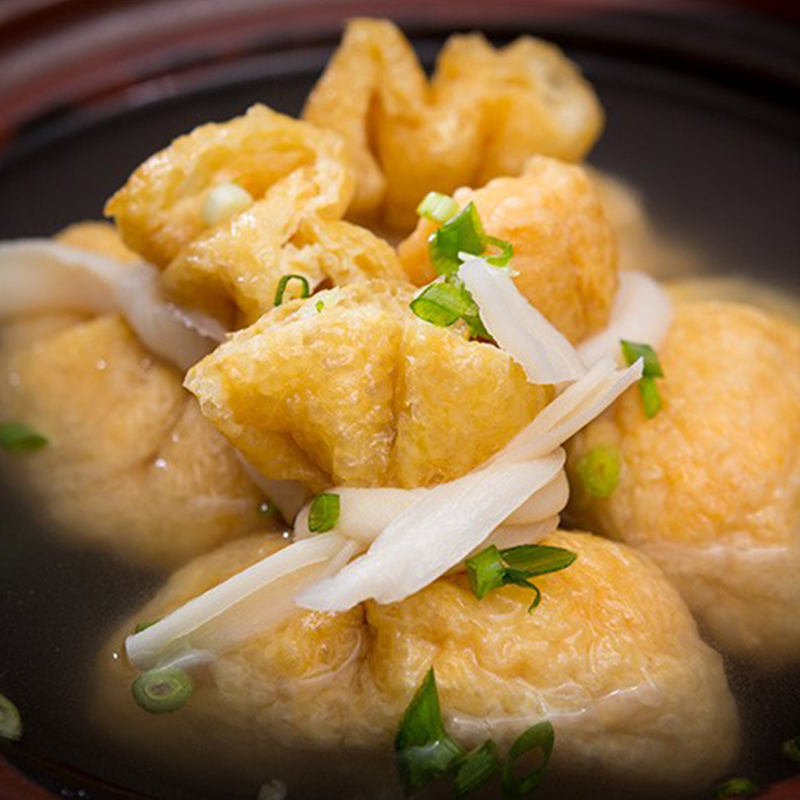 Take the stuffed fish balls with a filling.
