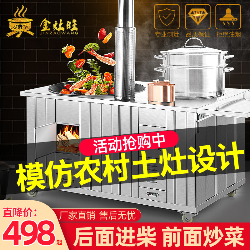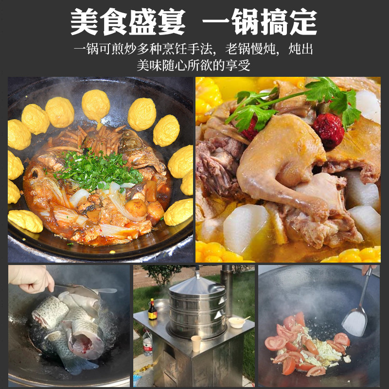 Rural firewood stove household firewood burning stainless steel round table top indoor and outdoor removable earth stove stove pot energy saving