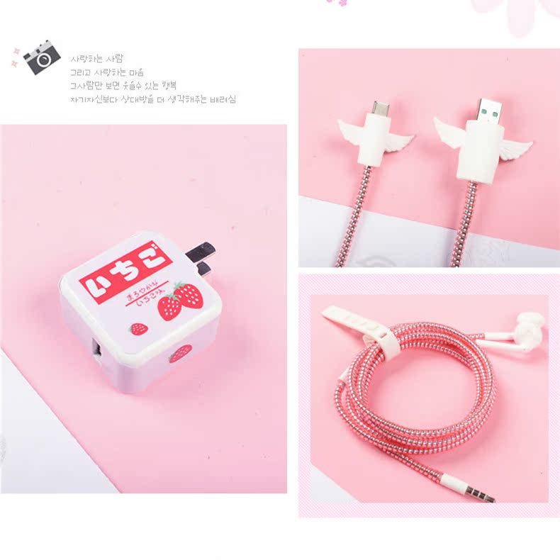 VIVO z5 x27 x27 s5 s5 nexsa mobile phone charger sticker headphone data wire winding line accommodating rope protection wire protector Cartoon Angel protective sheath coil decorative film outside