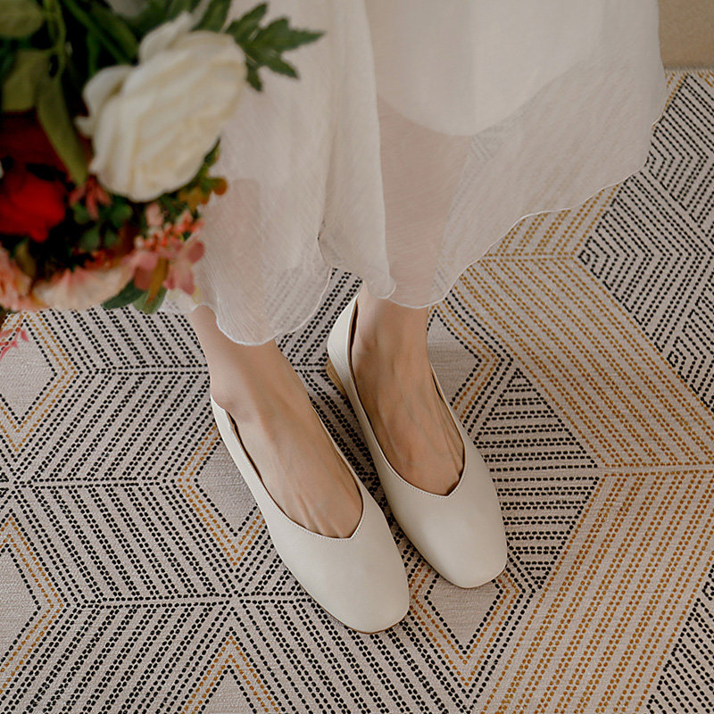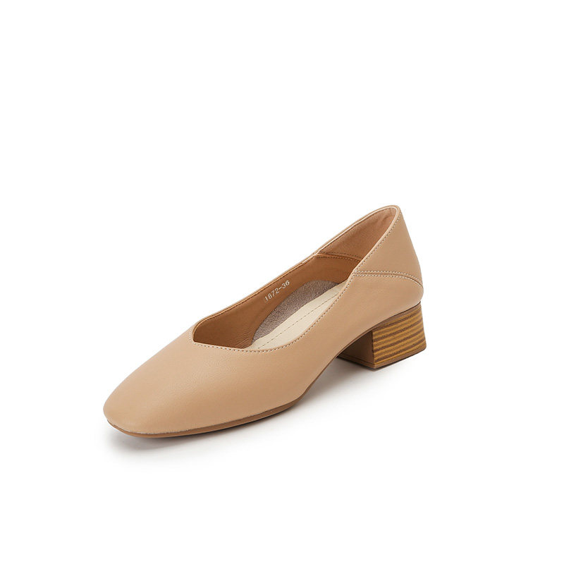 Real Leather Grandma Shoes Women Coarse Heel Single Shoes Fairy Middle Heels High Heels Shoes 2022 Shoes New Summer Breathable Women Shoes