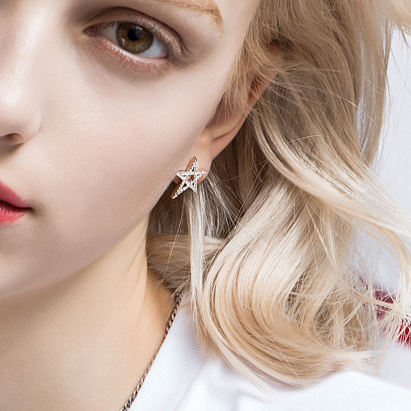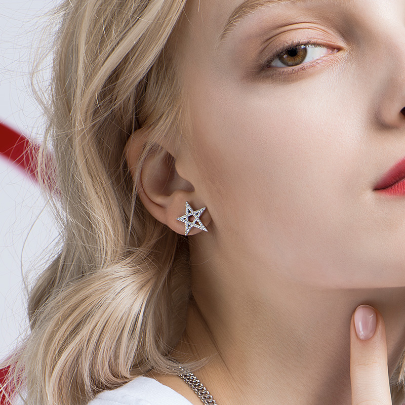 HEFANG star jewelry small star stud earrings 925 sterling silver women's simple cold wind accessories earrings ear jewelry