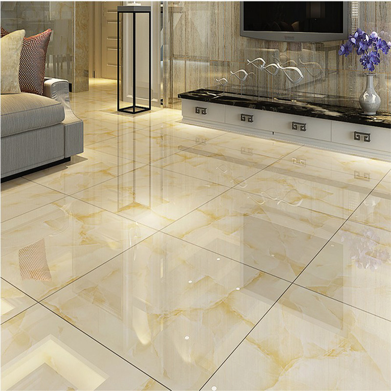 Tile floor tile 800x800 marble living room non-slip floor tile glazed tile warm color yellow whole body tile 80