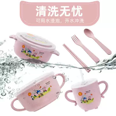 Wheat straw baby tableware set Baby bowl spoon Non-food bowl Baby eating children's bowl meal cup can be heated