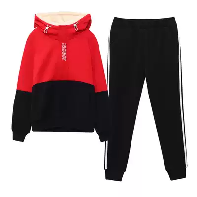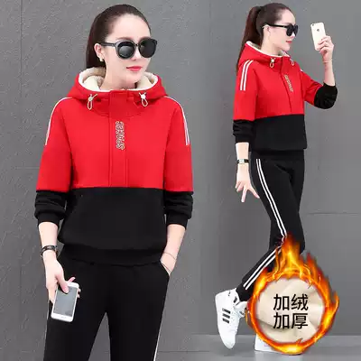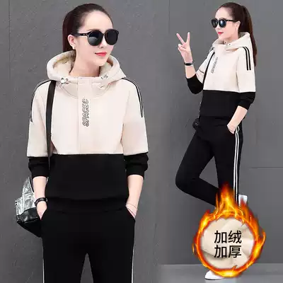 Sports set women's autumn and winter clothes 2021 New plus velvet padded casual loose long sleeve thick cotton T fashion two-piece set