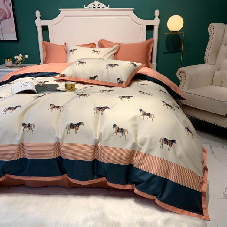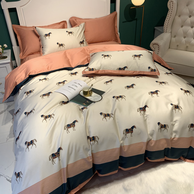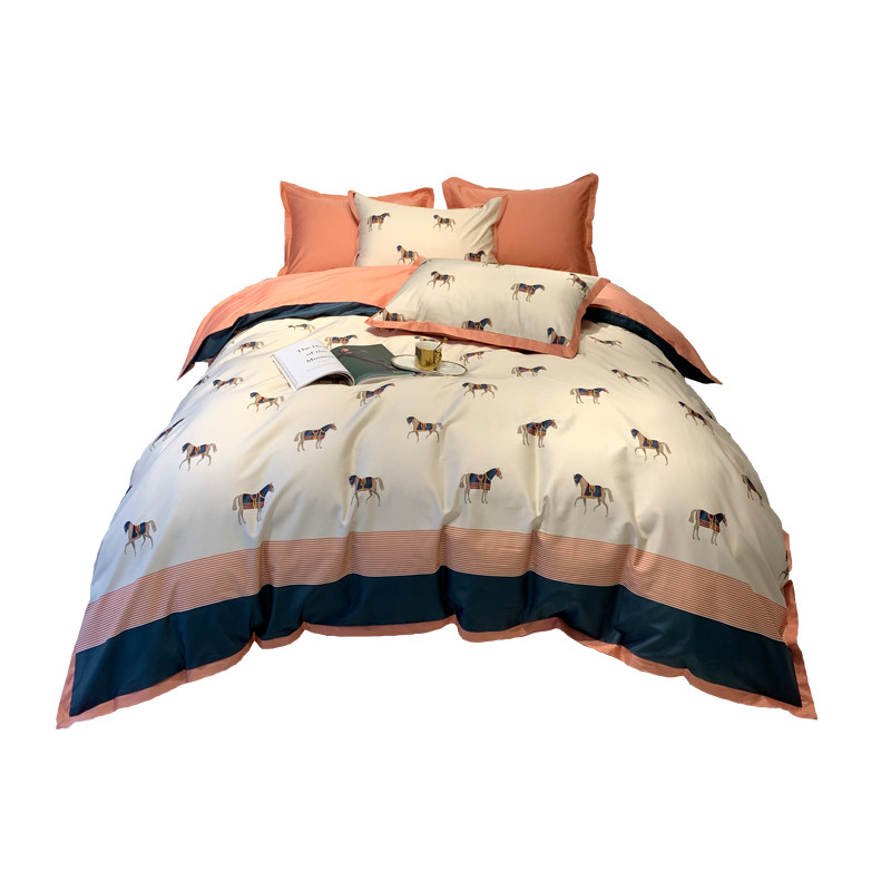 Light luxury American 60s long-staple cotton cotton bed four-piece digital printing cotton 1 8m bed sheet net red