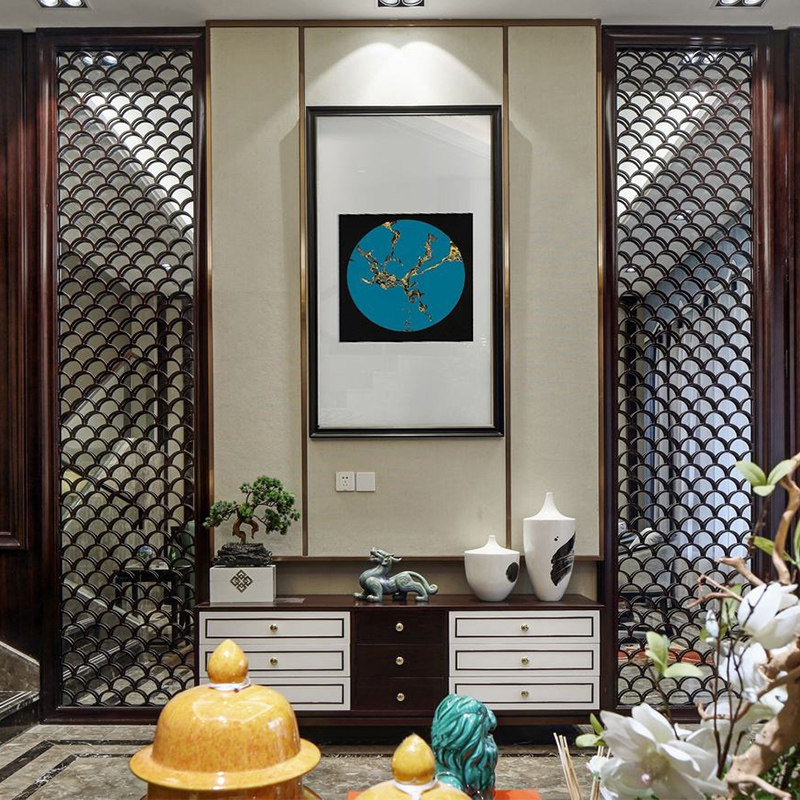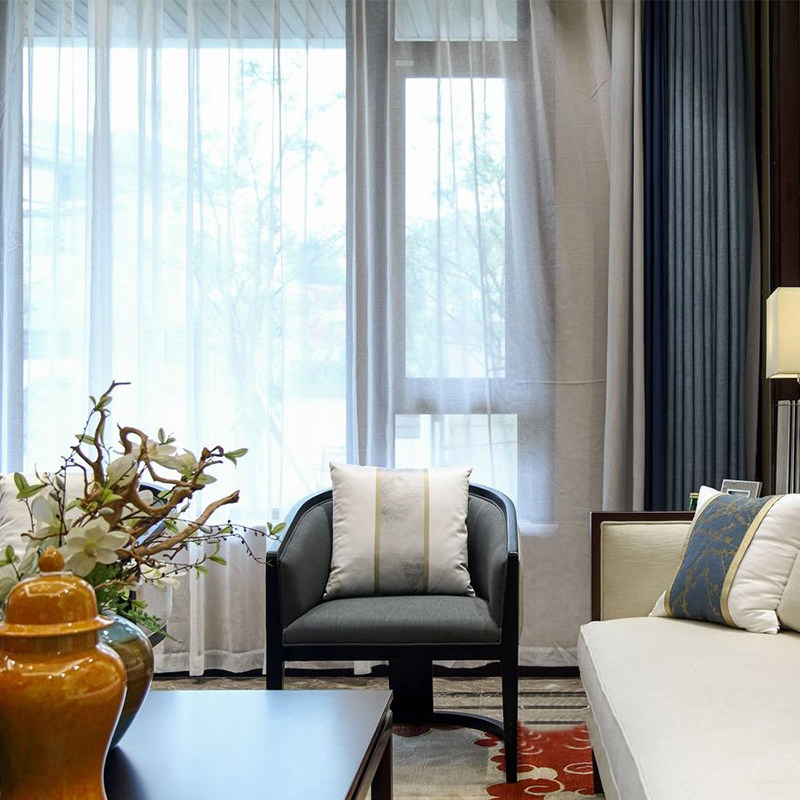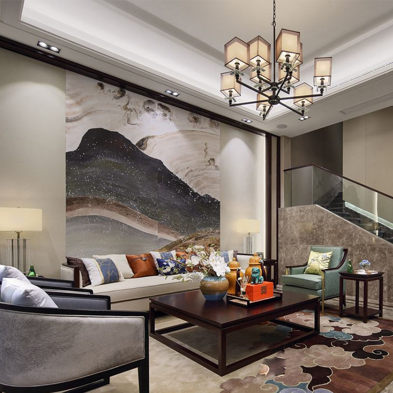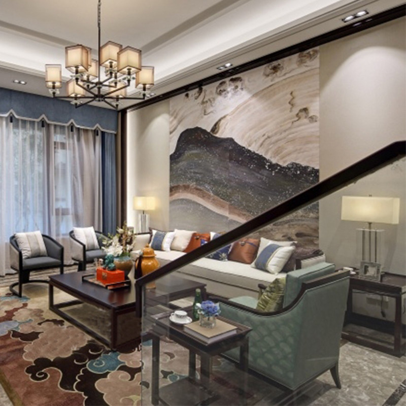 Modern new Chinese solid wood living room sofa hotel clubhouse with cloth art for sofa villas-like house furniture custom-made