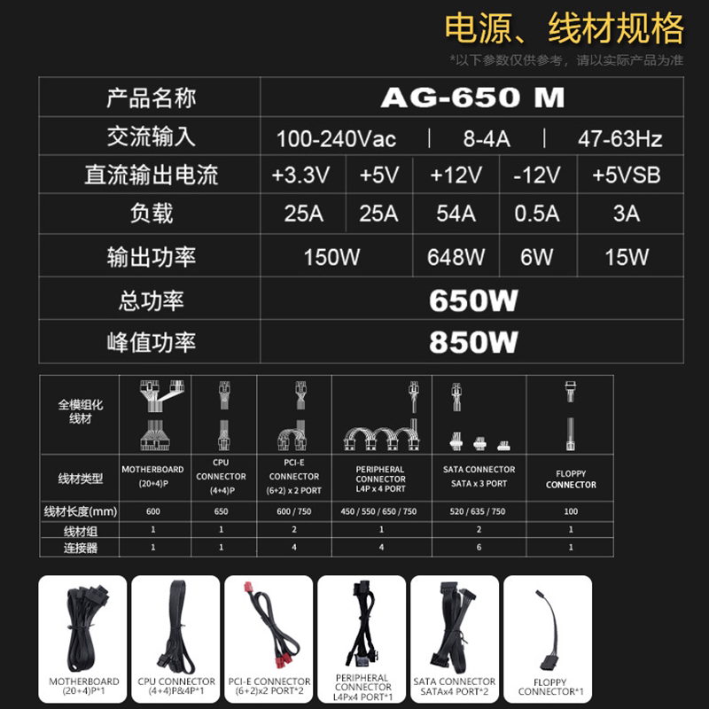 AG-650M Gold Full Module (Rated 650W Japanese-Taiwan Hybrid Capacitor 10 Years Warranty) AG-750M Gold Full Module (Rated 750W Japanese-Taiwan Series