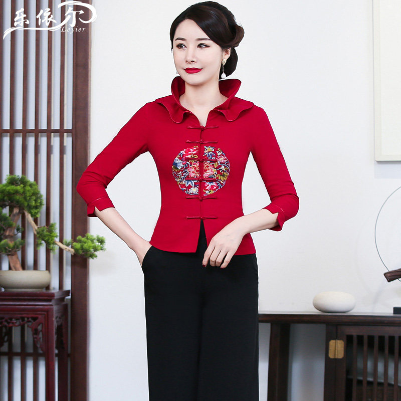 Summer short-sleeved improved linen embroidered cheongsam jacket cotton and linen Tang suit suit daily mother dress wedding dress large size