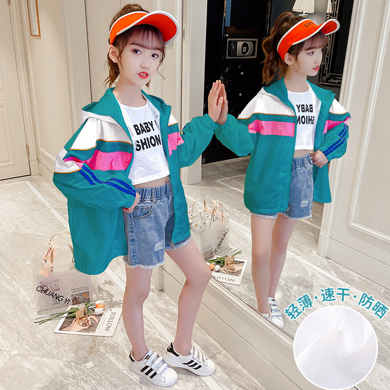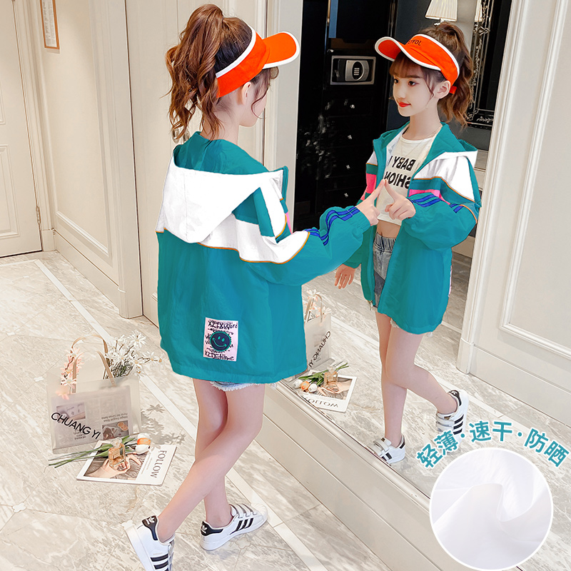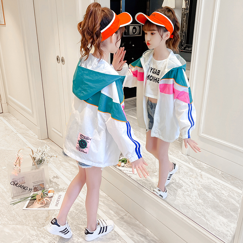 Girl's jacket 2022 spring and summer new female CUHK Tong Han version Even hat sunscreen Summer Thin Collage skin clothes
