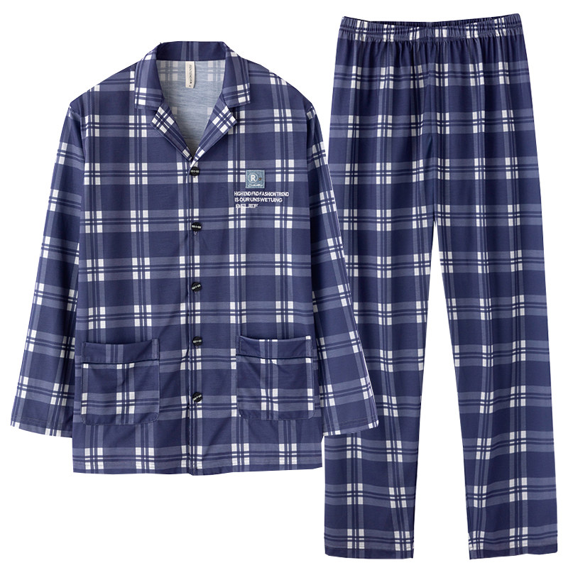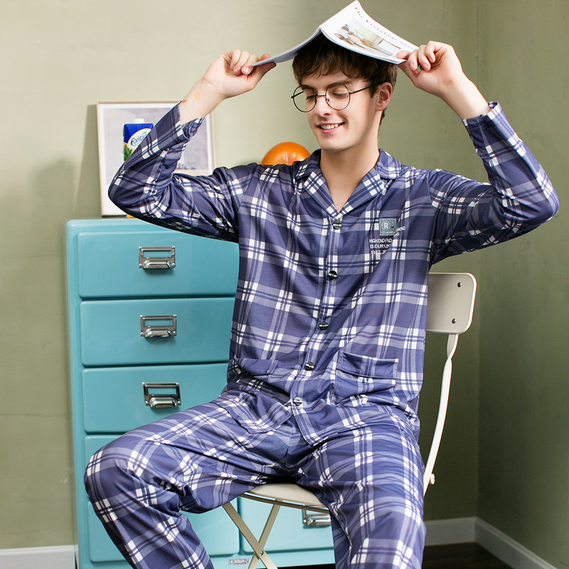 Fenteng 2022 spring and autumn new cotton long-sleeved pajamas men's plaid home clothes fashion loose men's suits