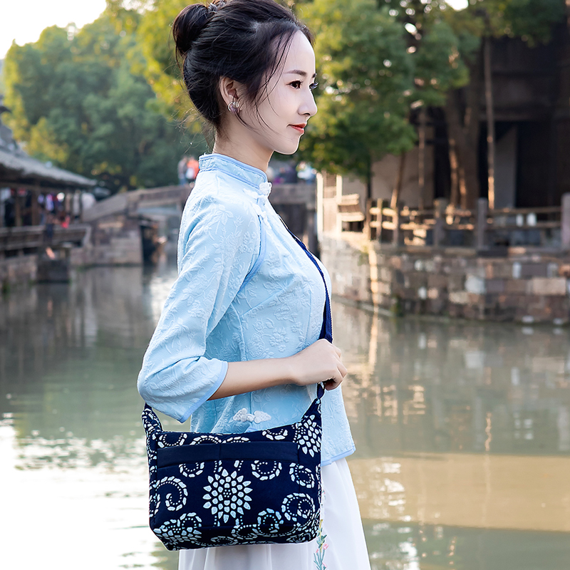 Uzhen Blue Print Handmade Wax Dyeing Single Shoulder Inclined Satchel Bag for Old Age Mom Pack Light shopping for groceries shopping bag