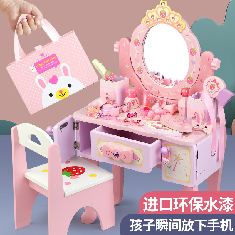 Children's wooden dress up wine simulation makeup table Makeup table Wooden toy Princess girl girl 3-7 years old 8 gifts
