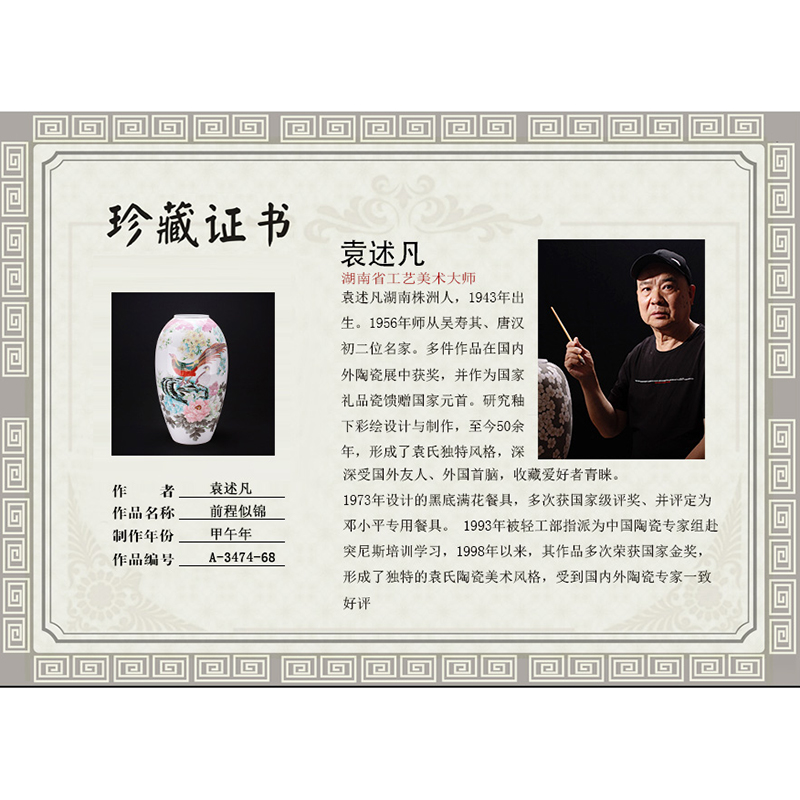 Chinese Ceramics Art Lifetime Achievement Award Provincial Artificial Beauty Master Yuan Nari Hand-painted Front Stroke Brocade Embroidered Vase Pendulum