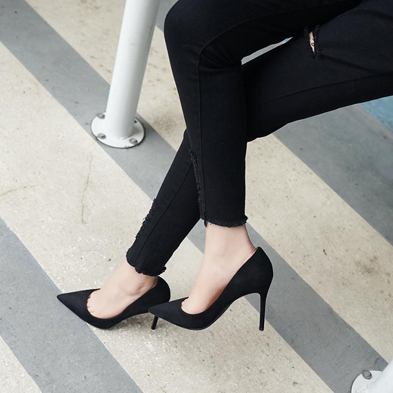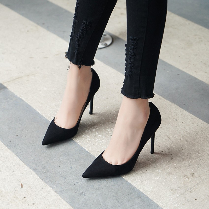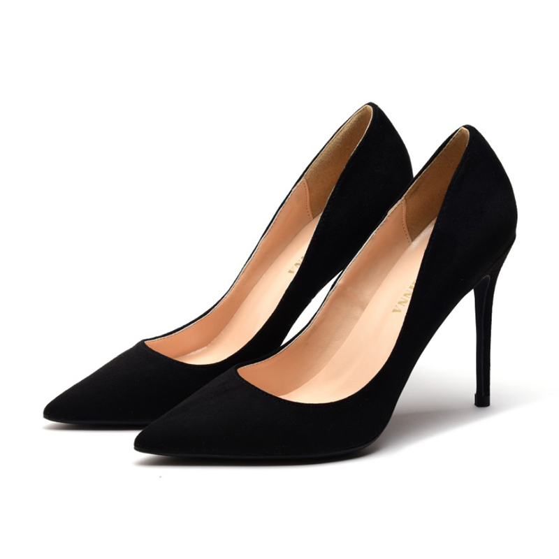 2021 spring new black professional high-heeled female thin-heeled flight attendant work Joker suede sexy pointed bag shoes