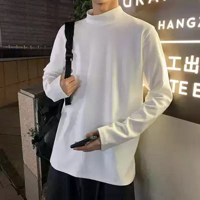 Spring half-turtleneck solid color long sleeve T-shirt 2019 new T-shirt Korean version of men's loose bottoming shirt top clothing trend
