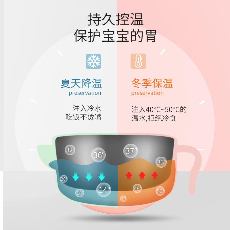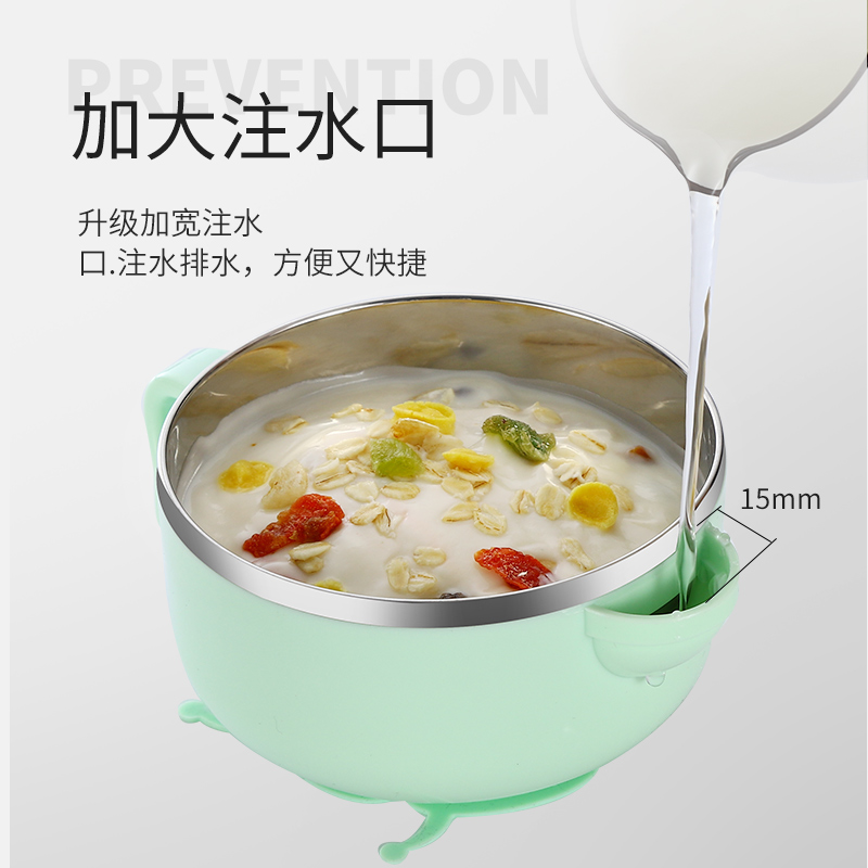 Baby water injection insulation bowl thermostatic children cutlery for dinner, vice food bowl anti-fall and burn-proof baby 304 suction cup bowl