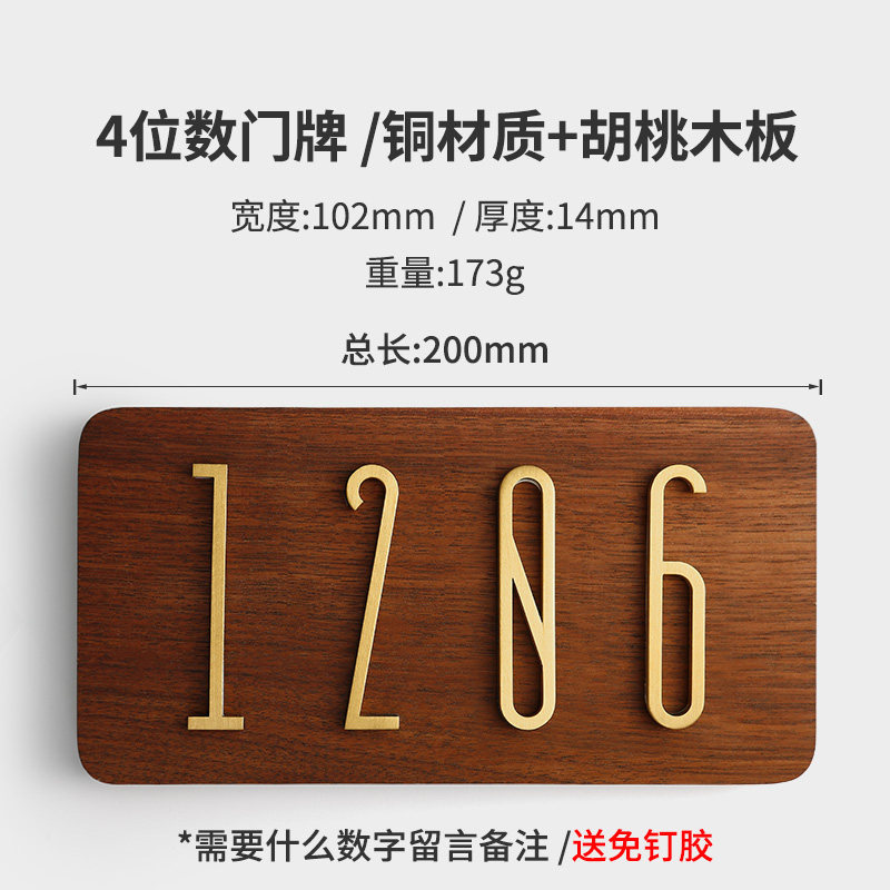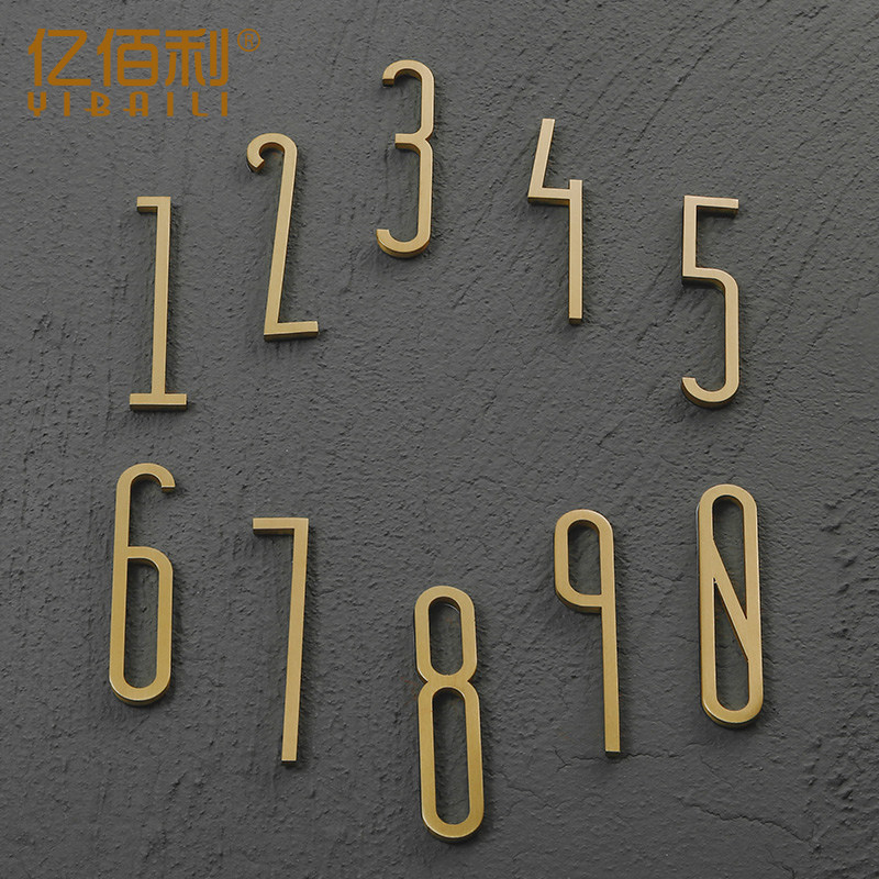 House number plate Household custom self-adhesive digital stickers ins Nordic creative hotel Hotel apartment pure copper house number