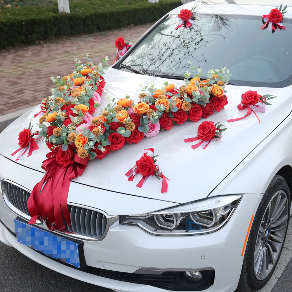 Big v wedding car flower wedding team flower main front car decoration pull float flower decoration set wedding car decoration Chinese style